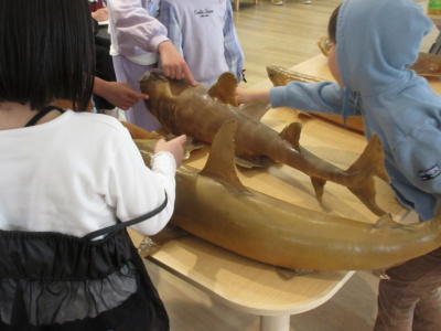 また、海とくらしの史料館のサメのはく製も実際に触ることができ、