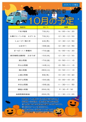 移動図書館車の10月の予定表です。