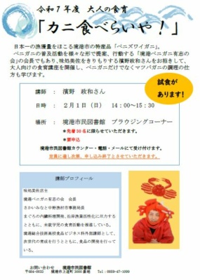 味処美佐をきりもりする濱野政和さんをお招きして、大人向けの食育講座を開催します。
